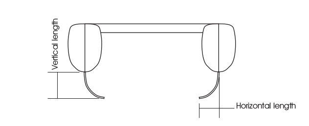 The illustration to the left shows a front view of a catamaran with C-boards extended to illustrate where the vertical and horizontal extended lengths are measured.
